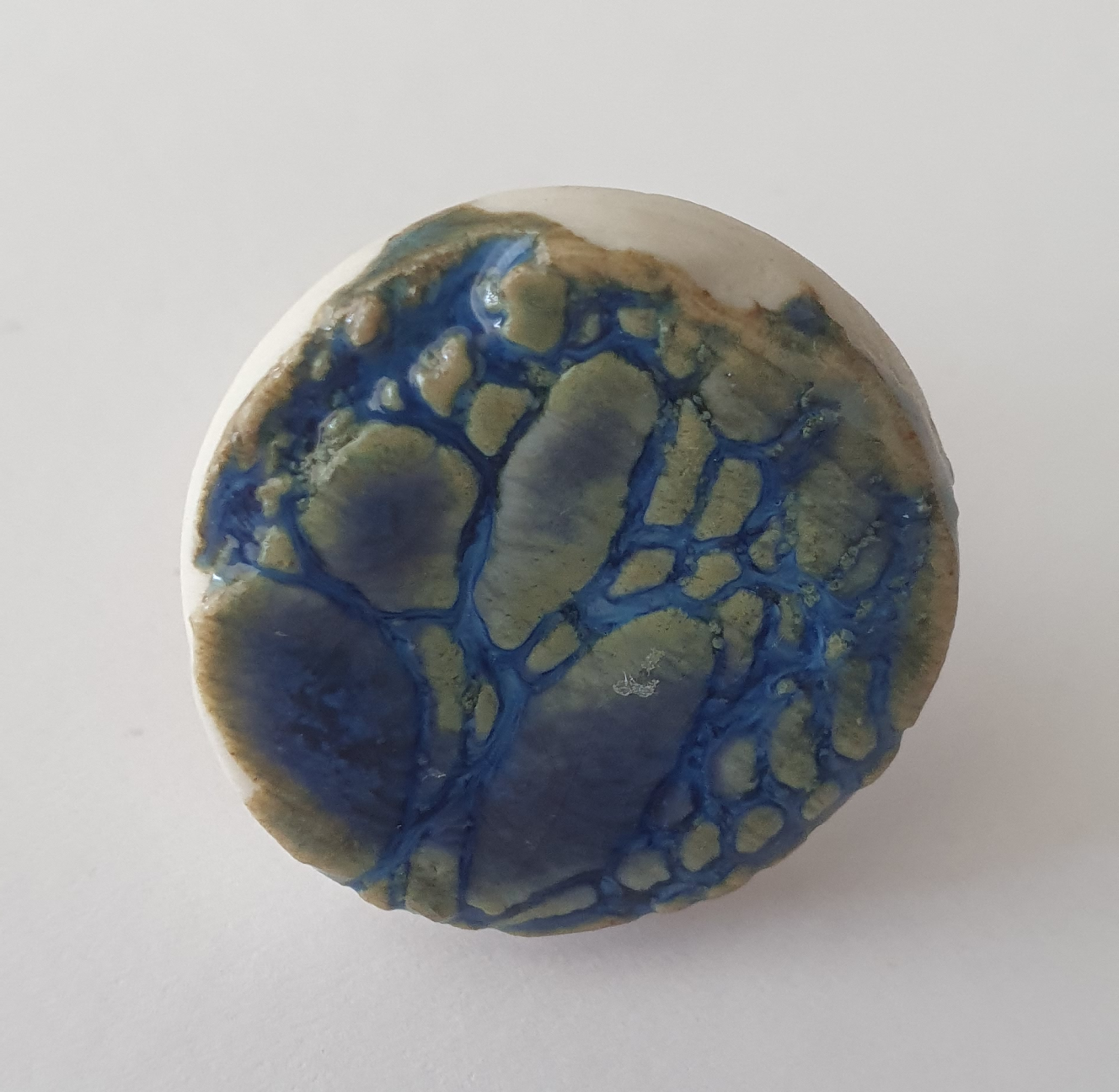 Este anel é uma verdadeira obra de arte, cuidadosamente modelada em porcelana e pintada à mão com óxidos e vidrados especiais, seguindo um processo inteiramente artesanal. A peça é submetida a uma queima a 1240°C, resultando em um acabamento delicado e duradouro.